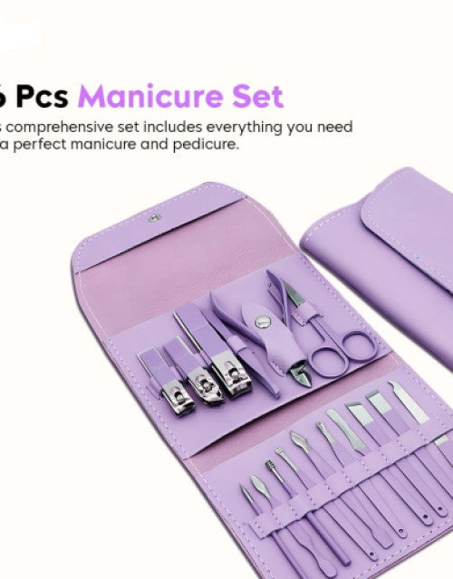 16 Piece Manicure Set - Professional Grooming Kit for Nails, Cuticles & Personal Care